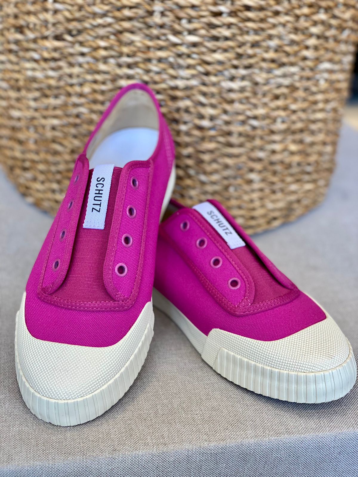 TÊNIS EM LONA SEM CADARÇO COM BICO ARREDONDADO. REF S2113600010051. COR ROSA/OFF