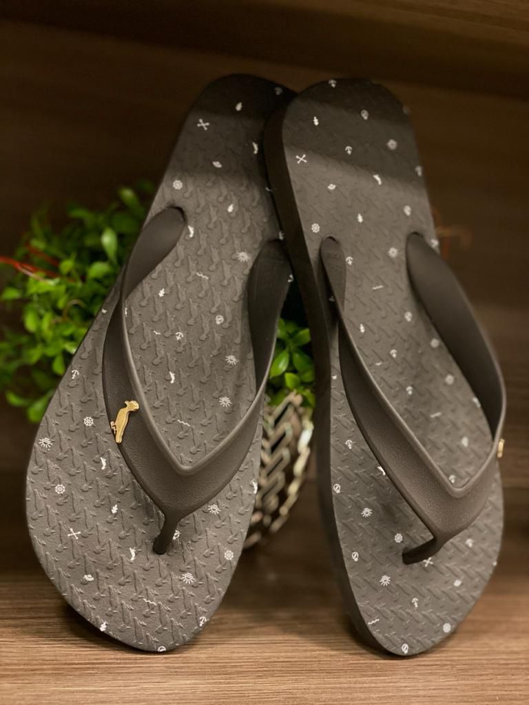 CHINELO EM BORRACHA COM LOGO DA MARCA APLICADO NAS TIRAS E ESTAMPA NO SOLADO . REF R7500403700003. COR PRETO/BRANCO