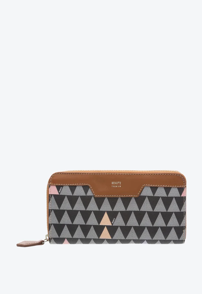 CARTEIRA MÉDIA COM FECHAMENTO EM ZÍPER. DIMENSÕES 20X11X0 CM. REF S4605800090001. COR PRETO/MARROM/ROSA.